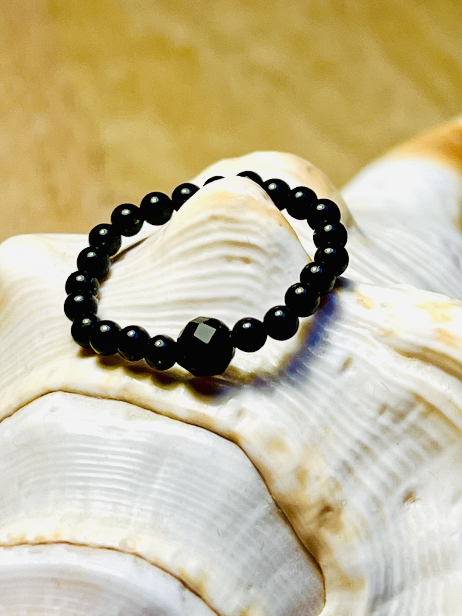 Pierścionek elastyczny wykonany z czarnego onyksu.