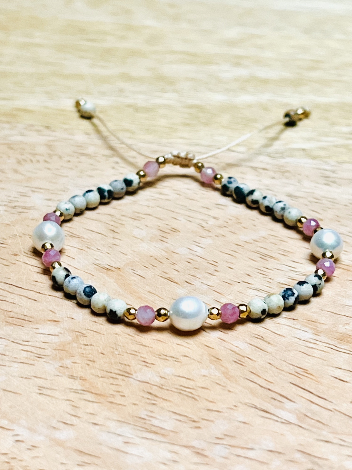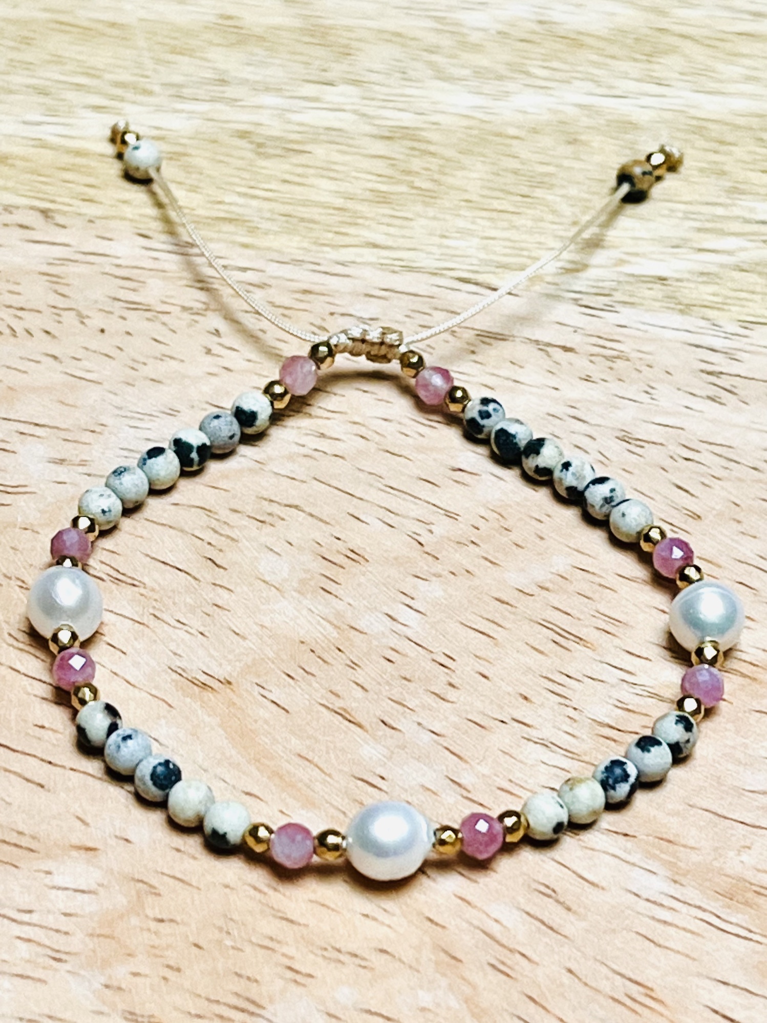 Bransoletka Perełki z Jaspisem Dalmatyńskim i Turmalinem